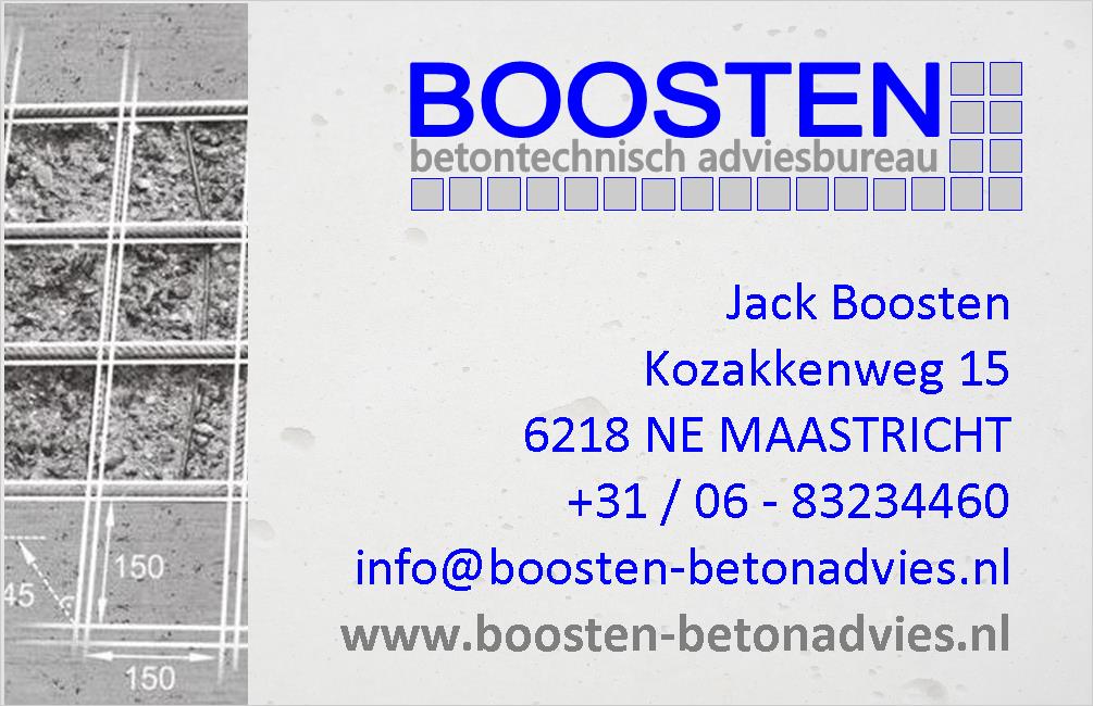 Boosten BetonadviesKozakkenweg 156218 NE Maastricht06-83234460info@boosten-betonadvies.nl Kamer van Koophandel 77894758 BTW NL861189085.B01Algemene voorwaarden volgens DNR 2011